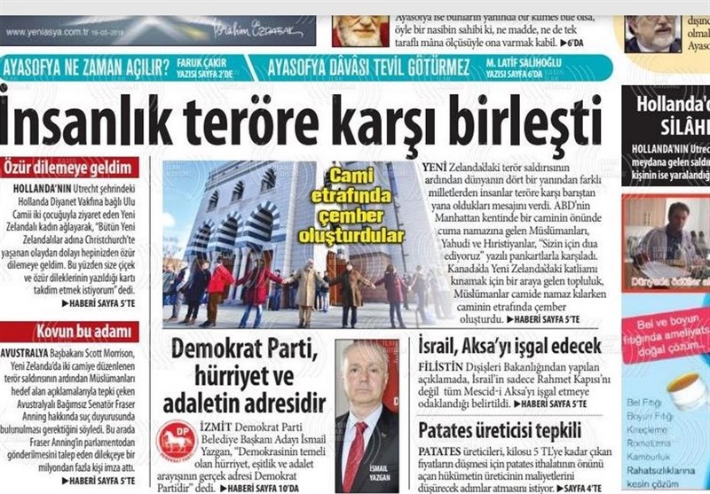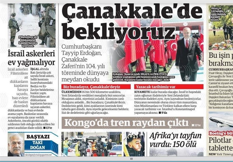 به گزارش گروه بینالملل خبرگزاری تسنیم، بسیاری از روزنامههای ترکیه، امروز در عکس و تیتر صفحه نخست، حمله تروریستی در هلند و پاسخ اردوغان به تروریست نیوزلندی را برجسته کردهاند.