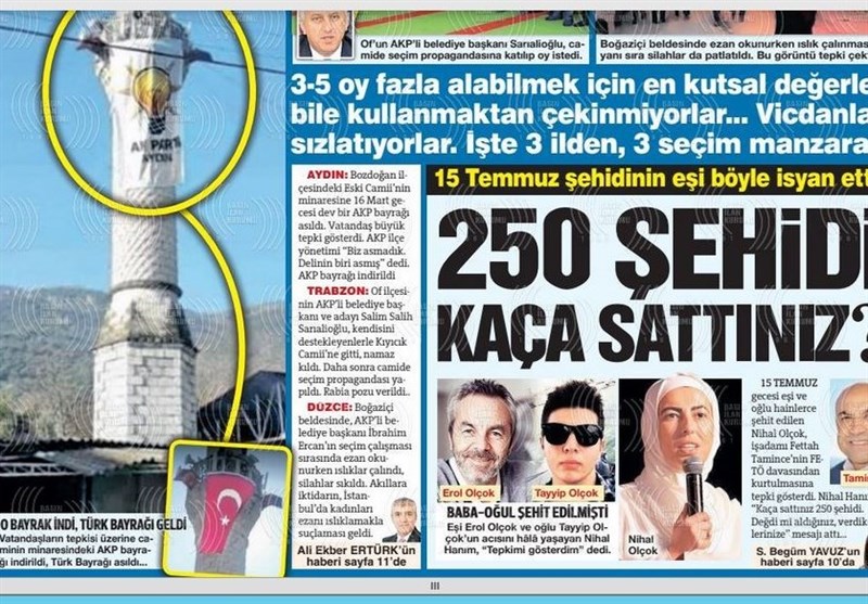 استفاده ابزاری از دین و نصب پرچم آکپارتی روی مناره مسجد