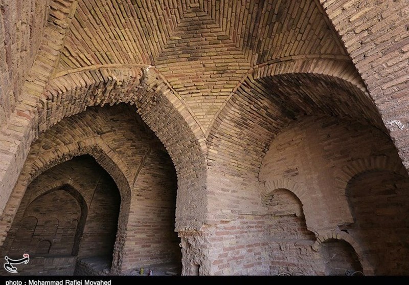 در سمت جنوب شرقی مجموعه مسجدی با مساحت 300 مترمربع به چشم میخورد که محل اقامهی نماز مسافران بوده است. این مسجد در سمت راست ورودی قرار گرفته و با بررسیهایی که انجامشده قدمت محراب آن به زمان سلجوقی برمیگردد اما دیوارههای کنار محراب برای دوره ساسانی است که نشان میدهد محراب در سالهای بعد از ساخت مسجد به این قسمت اضافهشده است.
