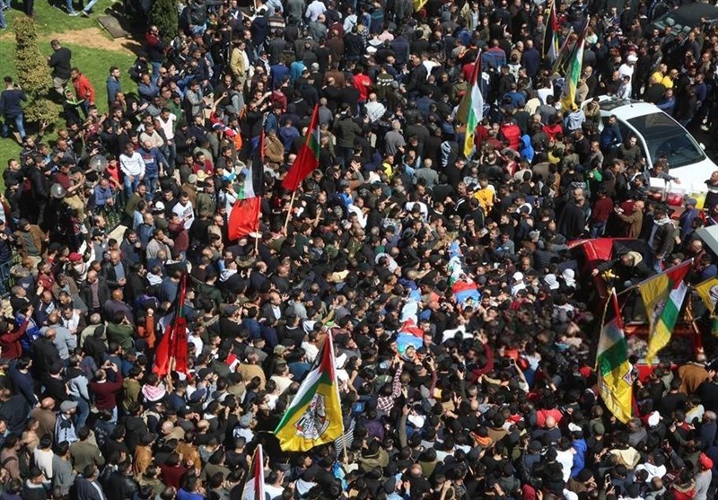 شرکتکنندگان در مراسم تشییع پیکرهای این دو شهید در حالی که پرچم فلسطین را حمل میکردند شعارهایی در محکومیت جنایات رژیم صهیونیستی سرداده خواستار گرفتن انتقام خون شهدا شدند.