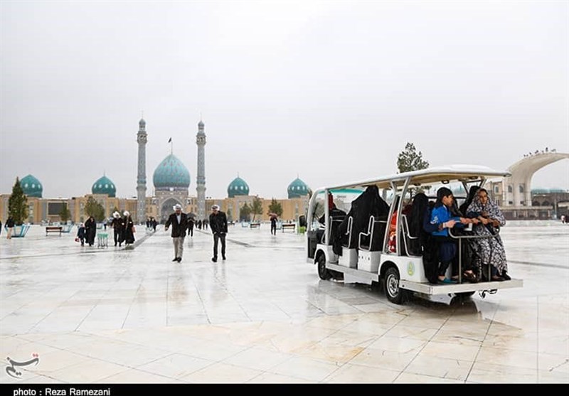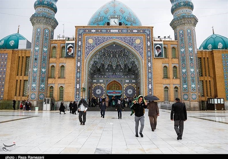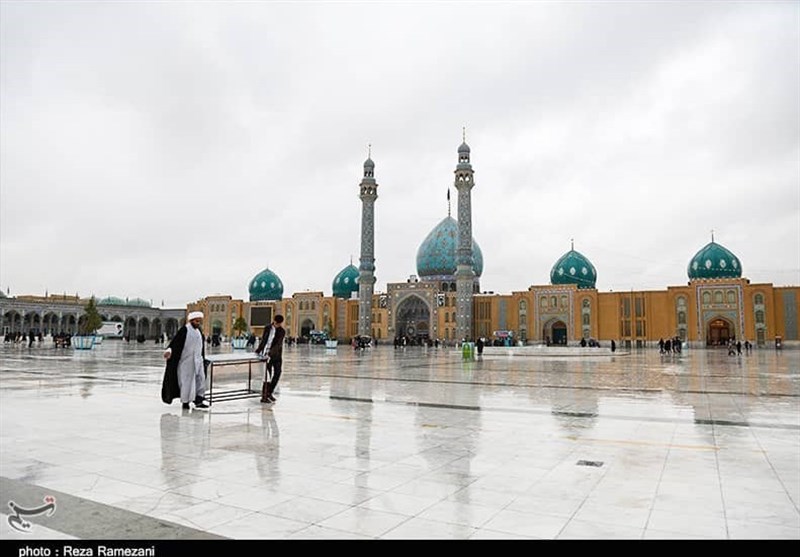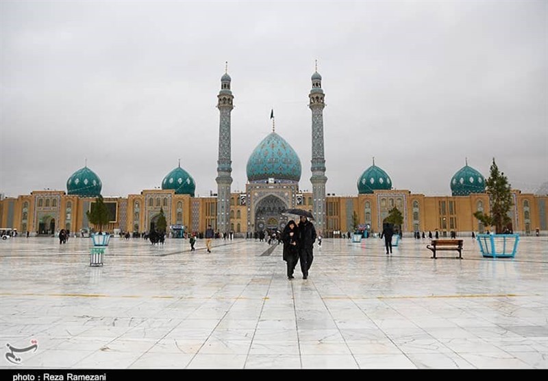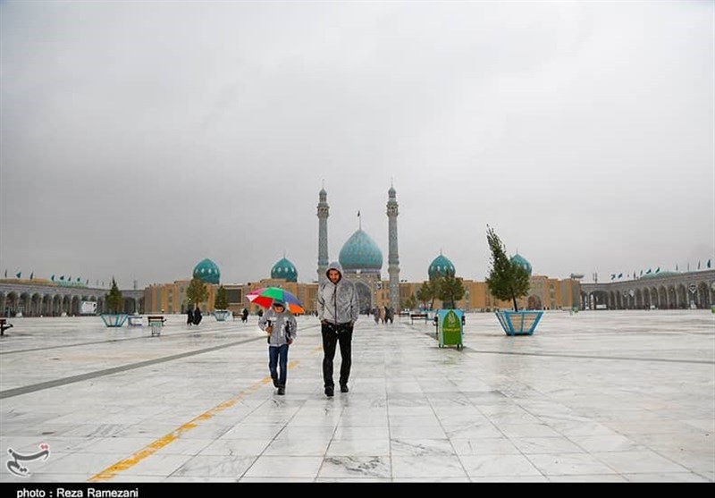 بارش باران بهاری در مسجد جمکران به روایت تصویر