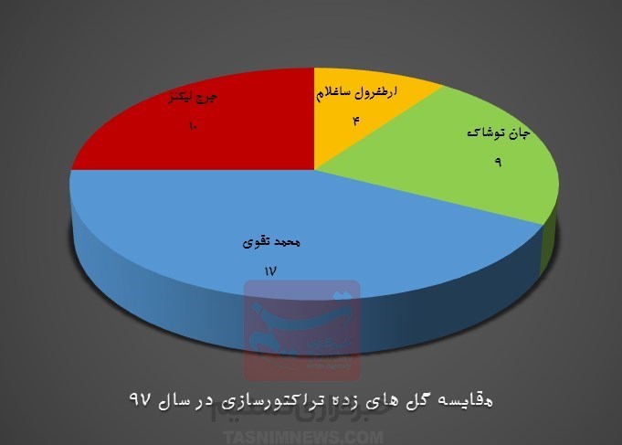 تراکتورسازی در 30 دیداری که در سال 97 برگزار کرد، 40 بار دروازه حریفان را باز کرد. در این میان سرخپوشان تبریزی در زمان هدایت محمد تقوی بیشترین گل زده را داشتهاند و با 17 گل زده در 9 بازی، میانگین 1.88 گل برای هر بازی را به ثبت رساندند. بازیکنان تراکتورسازی در 7 دیداری که با هدایت جرج لیکنز به میدان رفتهاند نیز 10 بار دروازه حریفان را باز کردهاند تا میانگین 1.42 گل زده برای هر بازی نیز برای شاگردان لیکنز در 7 بازی به ثبت برسد.
