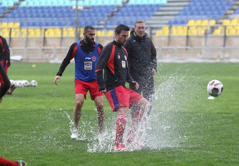 بازیکنان تیم فوتبال پرسپولیس، تمرینات خود را در هوای ابری و بارانی پیگیری کردند.