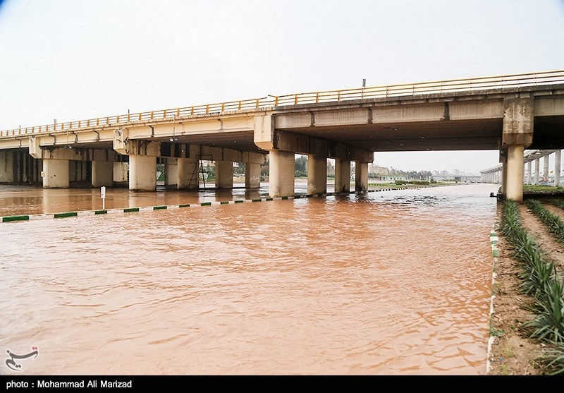 طغیان رودخانه محور ساحلی گناوه به بوشهر را مسدود کرد
