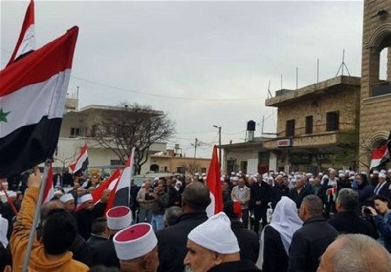 تجمع کنندگان پرچم های سوریه را در دست داشتند و شعارهای ملی سرداده و تاکید کردند که جولان بخشی از خاک سوریه است و باقی خواهد ماند.