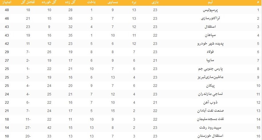 تیم تراکتورسازی نیز با پیروزی مقابل استقلال خوزستان 46 امتیازی شد و به رده دوم صعود کرد.