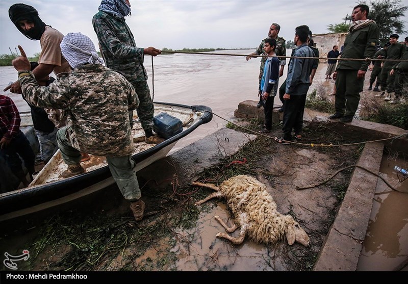 بامدژ زیر آب رفته و مردم در حال تخلیه و نجات خود، امکانات و دام‌ها هستند.