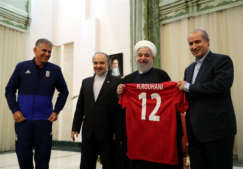 روحانی در دیدار مسئولان وزارت ورزش، فدراسیون فوتبال، بازیکنان و کادر فنی تیم ملی فوتبال، یکشنبه 30 اردیبهشت