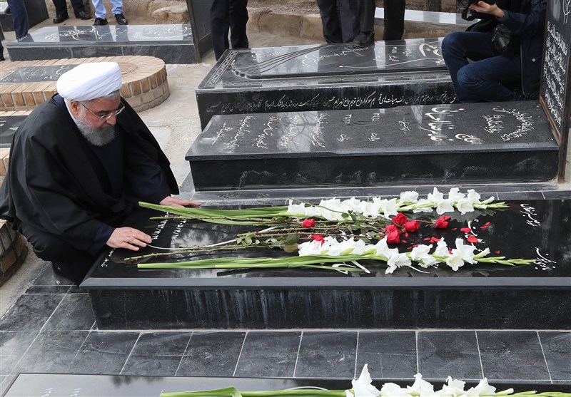 حضور روحانی بر سر مزار پدر و مادر و شهدای سرخه، چهارشنبه 14 آذر