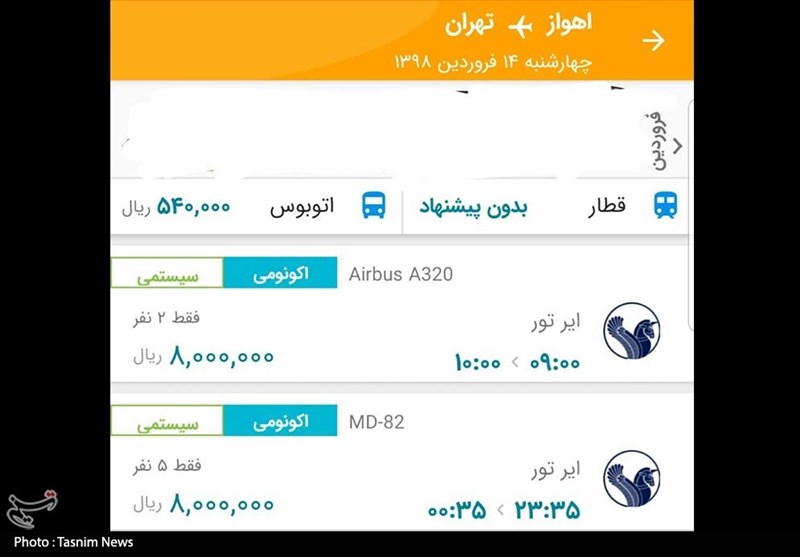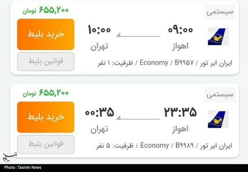 به گزارش خبرگزاری تسنیم از اهواز، دفاتر هواپیمایی در استان خوزستان در اقدامی سودجویانه بلیت پرواز اهواز به تهران را 800 هزار تومان ثبت کرده‌اند و این در حالی است که استان خوزستان در شرایط بحرانی قرار دارد و مسئولان استانی و کشوری از تمامی سازمان‌ها و شرکت‌ها خواسته‌اند که در شرایط فعلی بهترین خدمات را به شهروندان ارائه دهند.
