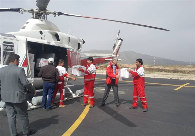 تداوم امداد رسانی هوایی به روستاهای سیل زده کهگیلویه و بویراحمد؛ بالگرد هلال احمر عازم لوداب شد+تصاویر