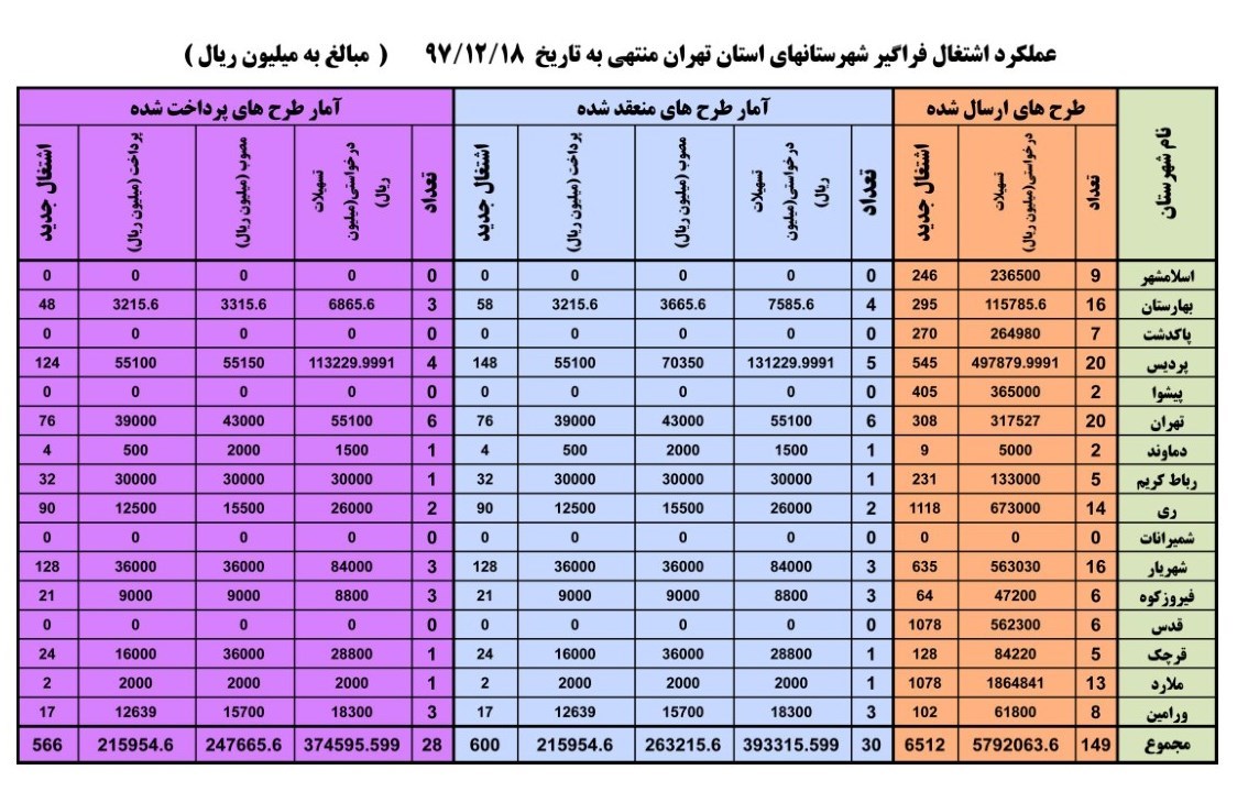 این اداره کل گزارشی از عملکرد تسهیلات اشتغال فراگیر شهرستان های استان تهران را منتشر کرد که مشاهده می کنید.