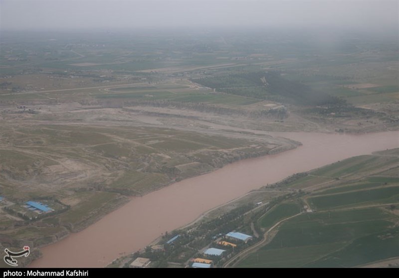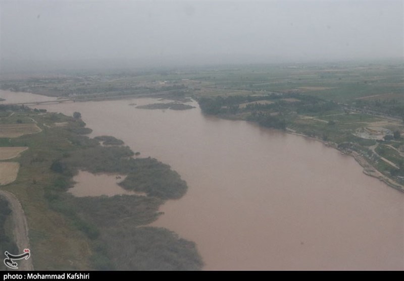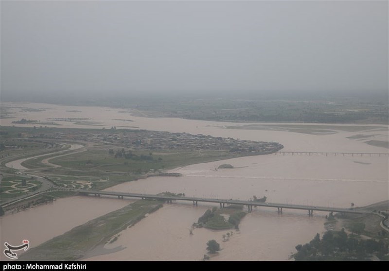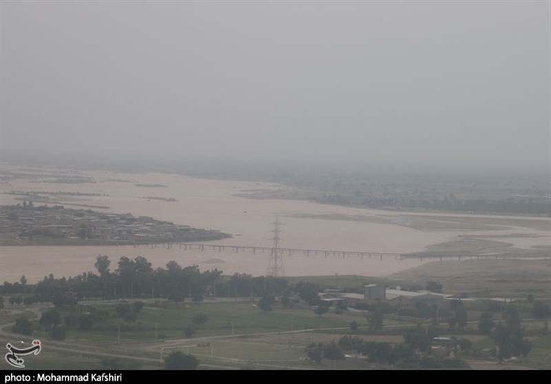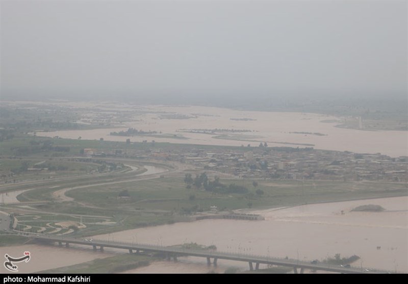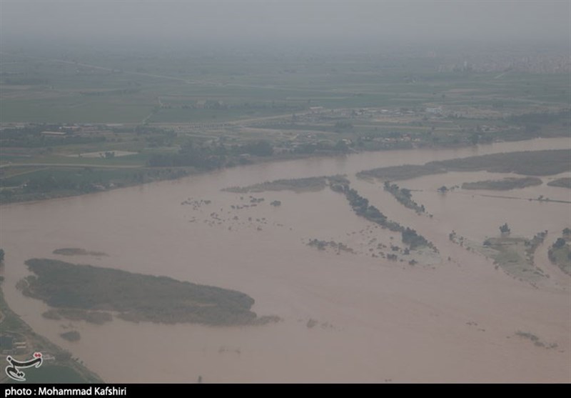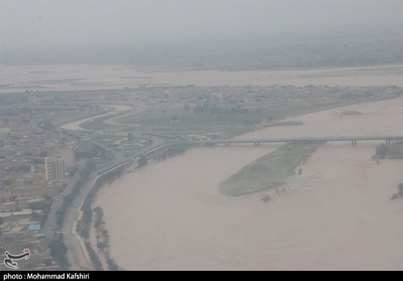 خوزستان| تصاویر هوایی از سیلاب و طغیان رودخانه دز در شهرستان دزفول