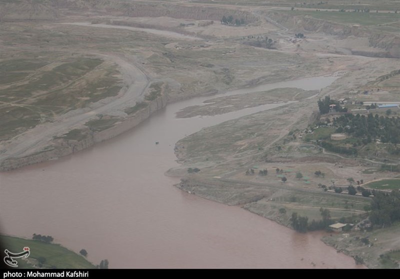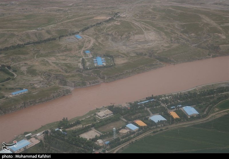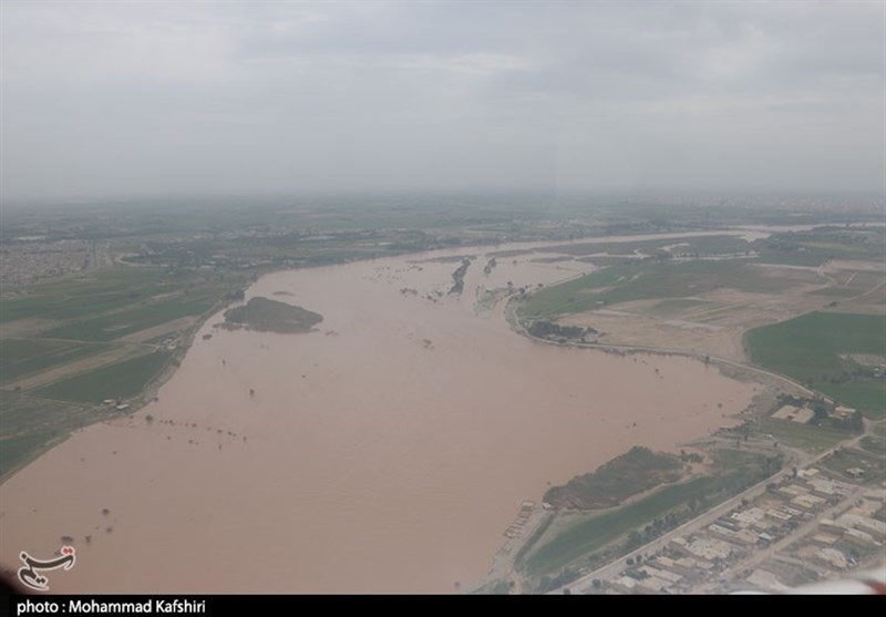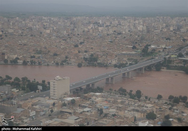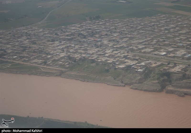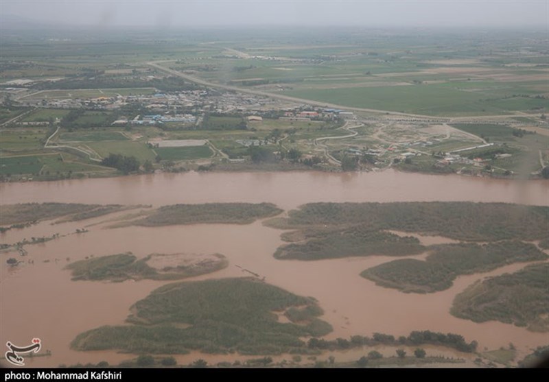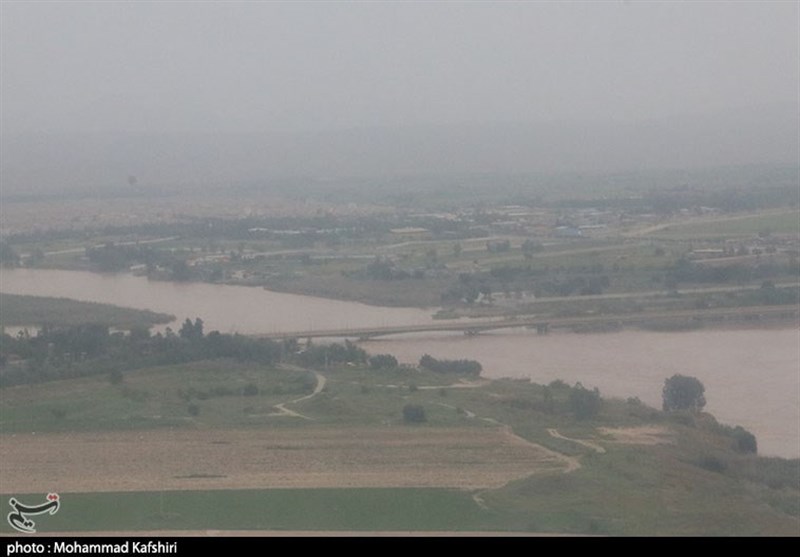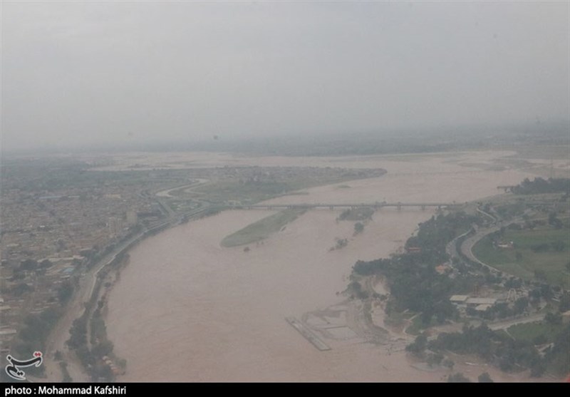 خوزستان| تصاویر هوایی از سیلاب و طغیان رودخانه دز در شهرستان دزفول