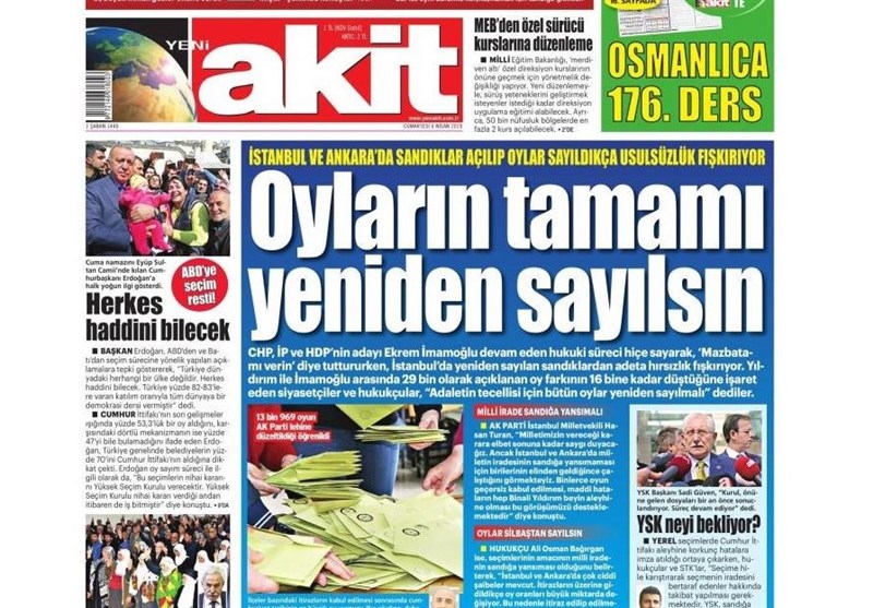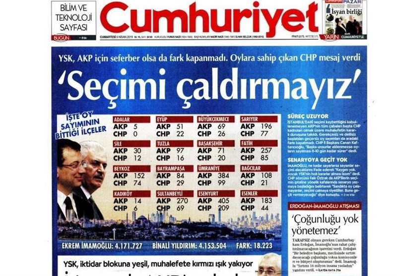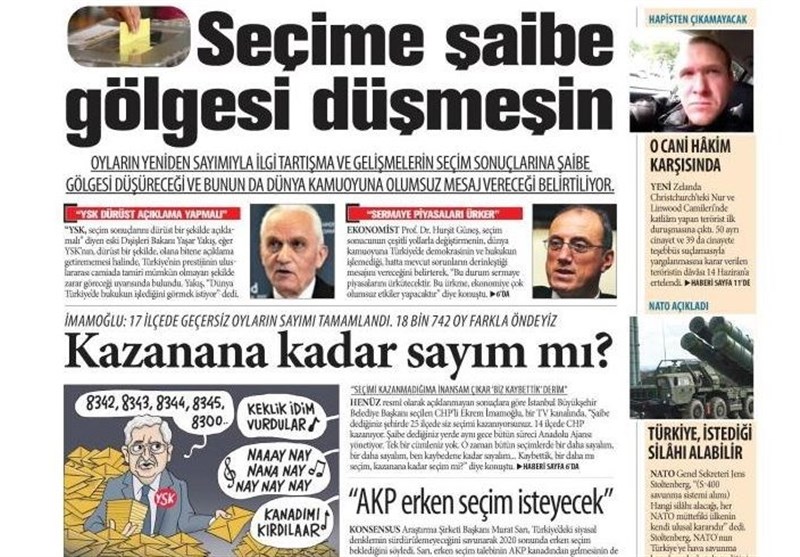 به گزارش گروه بینالملل خبرگزاری تسنیم، بسیاری از روزنامههای ترکیه، امروز در عکس و تیتر صفحه نخست، بازشماری آرای باطله استانبول را برجسته کردهاند.