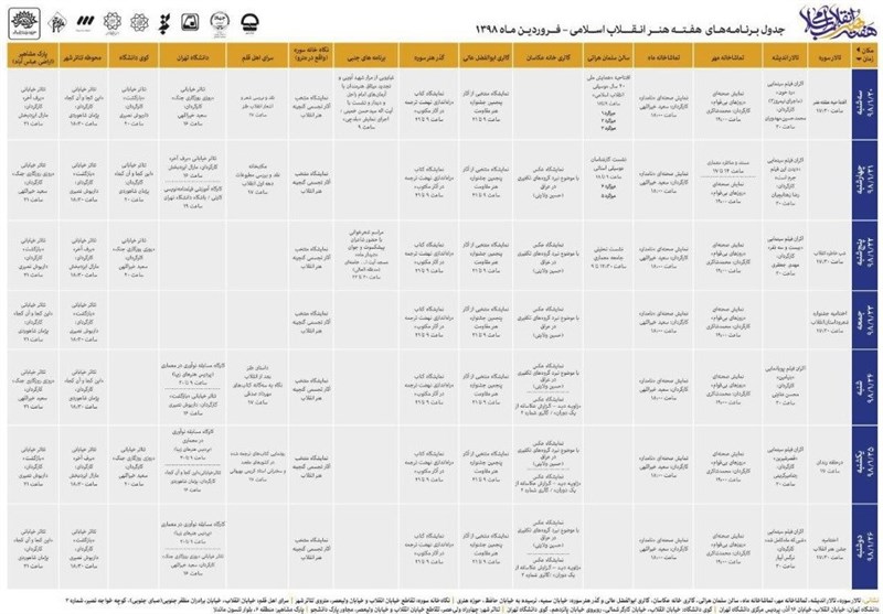 جدول برنامه‌های هفته هنر انقلاب منتشر شد + عکس