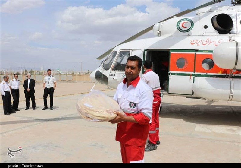 ارسال کمک‌های مردمی هلال احمر استان کرمان با بالگرد به روایت تصویر