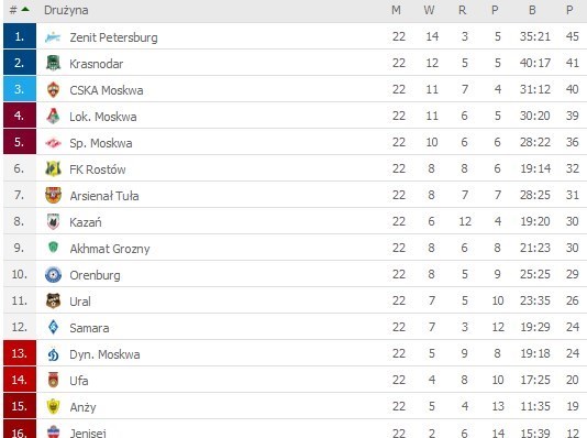 در جدول رده‌بندی 16 تیمی لیگ برتر روسیه تیم احمد گروژنی با 30 امتیاز نهم است.