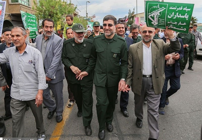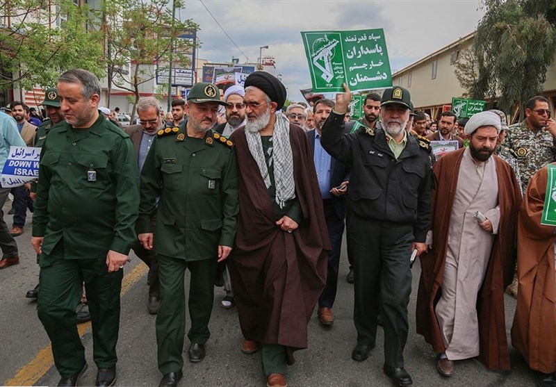 آیت الله سید محمدی امام جمعه قم، نیز با لباس سبز سپاه در این راهپیمایی باشکوه حضور یافت و اقدام اخیر ترامپ و دولت امریکا در قرار دادن سپاه پاسداران در لیست تروریست‌ها را محکوم کرد.