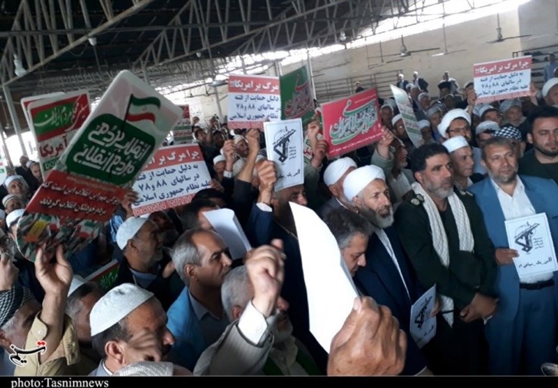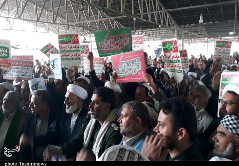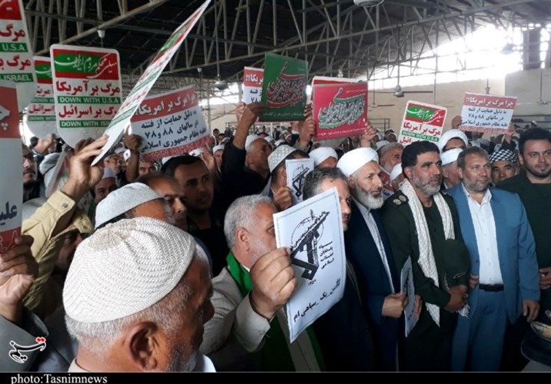 اقشار مختلف مردم شیعه و سنی امروز پس از اقامه نماز جمعه همدلی خود را با سپاه و خشم و نفرتشان را از این اقدام ننگین شیطان بزرگ و صهیونیسم بین‌الملل به نمایش گذاشتند.