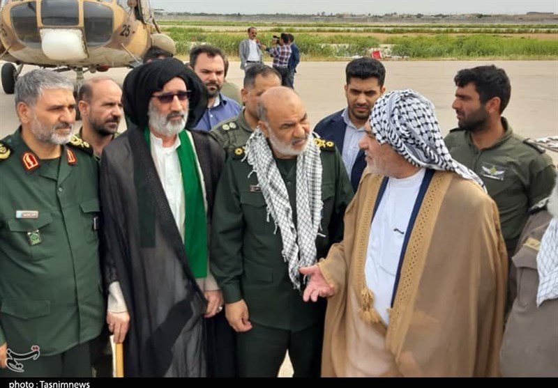 به گزارش خبرگزاری تسنیم از اهواز، سران عشایر عرب مناطق سیل‌زده امروز به‌وسیله بالگرد سپاه و با همراهی سردار نقدی معاون فرهنگی و اجتماعی سپاه پاسداران انقلاب اسلامی از مناطق هورالعظیم بازدید کردند.