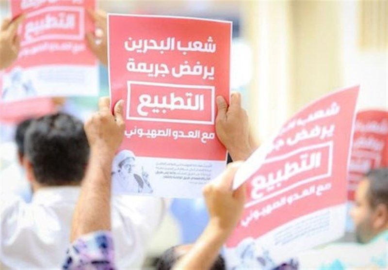 شهروندان بحرینی در حالی که پوستر "بحرین مخالف عادی سازی روابط با اسرائیل است" را در دست داشتند بر ایستادگی خود در برابر هرگونه طرح و نقشه به منظور عادی سازی روابط با رژیم صهیونیستی تاکید کردند.