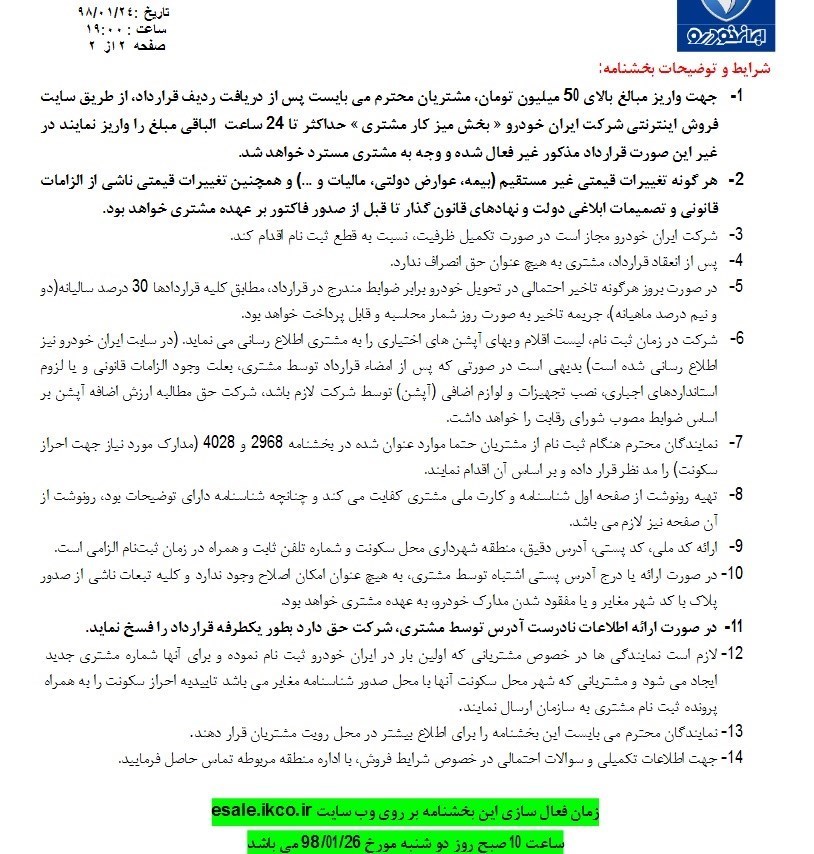 جزئیات طرح فروش فوری ایرانخودرو در فروردین ماه 98 بهشرح زیر است:
