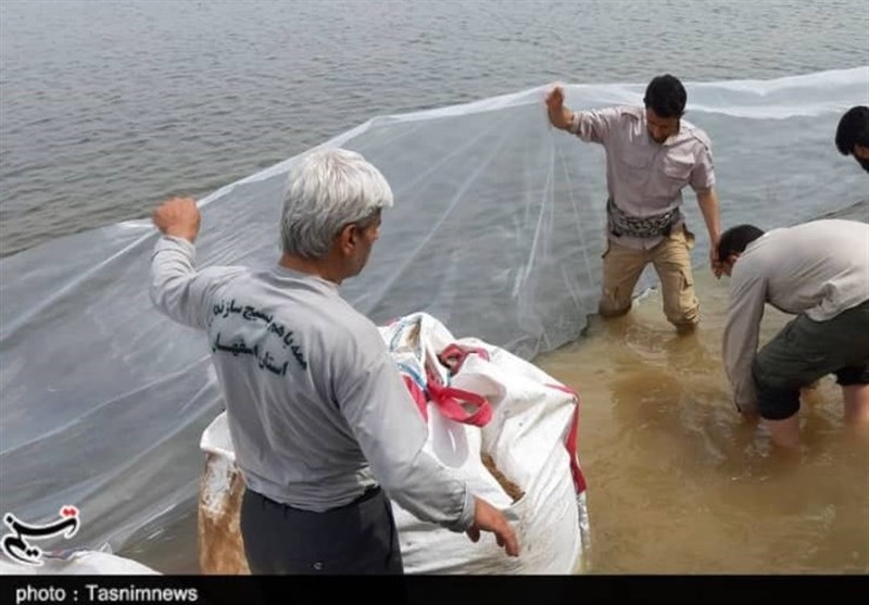 بستن سیلبند در اهواز با همت جهادگران اصفهانی