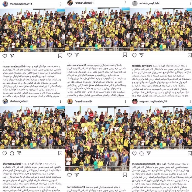 بازیکنان پارس جنوبی در اینستاگرام خود نوشته‌اند: