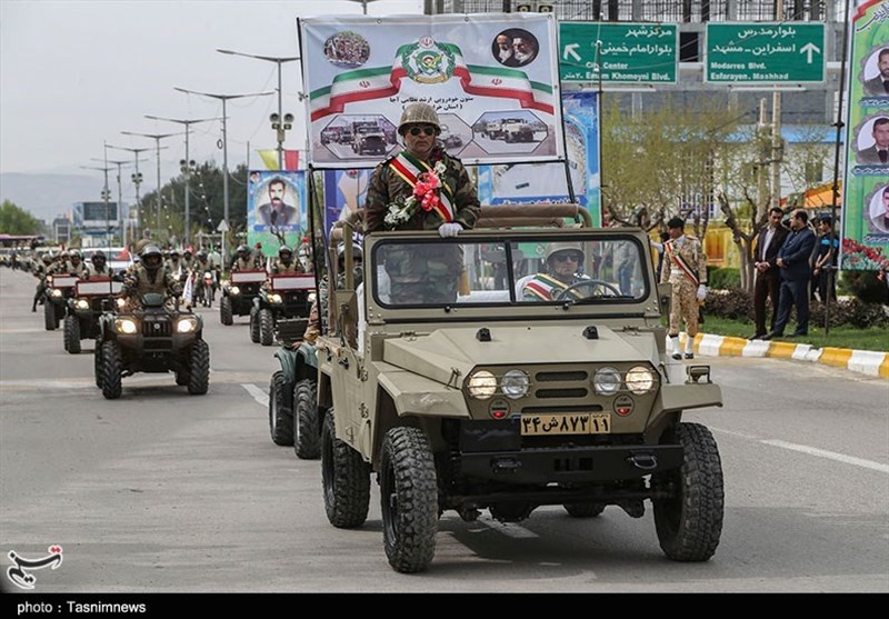 یگان‌های نمونه نیروهای مسلح مستقر در خراسان شمالی به مناسبت روز ارتش در بجنورد مراسم رژه برگزار کردند.