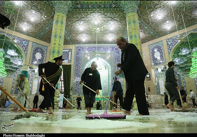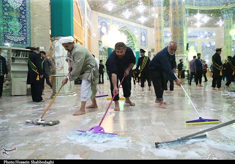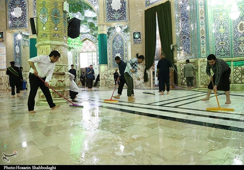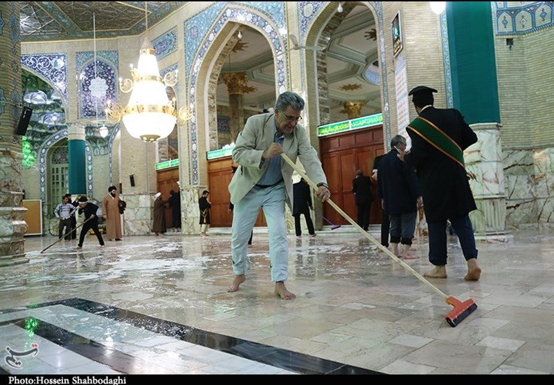 مراسم غبارروبی مسجد جمکران توسط اصحاب رسانه و هنرمندان به روایت تصویر