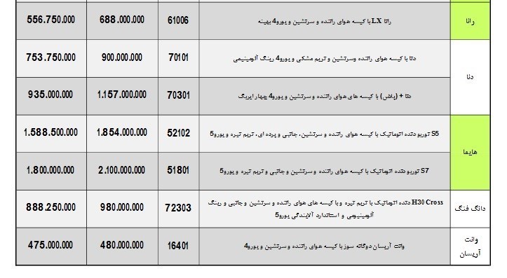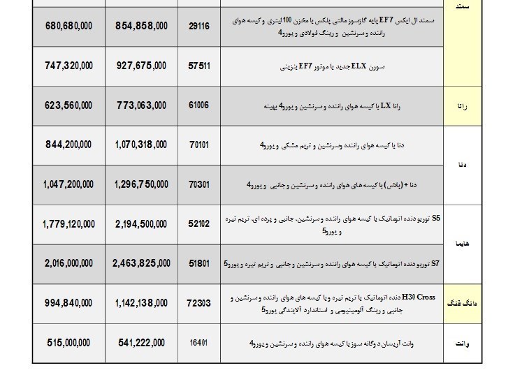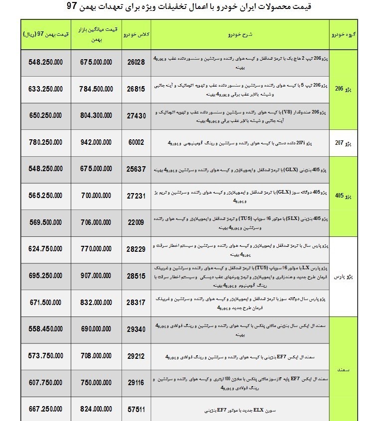 لیست قیمت های بهمن و اسفند ماه 97 محصولات ایران خودرو با اعمال تخفیفات به شرح زیر است: