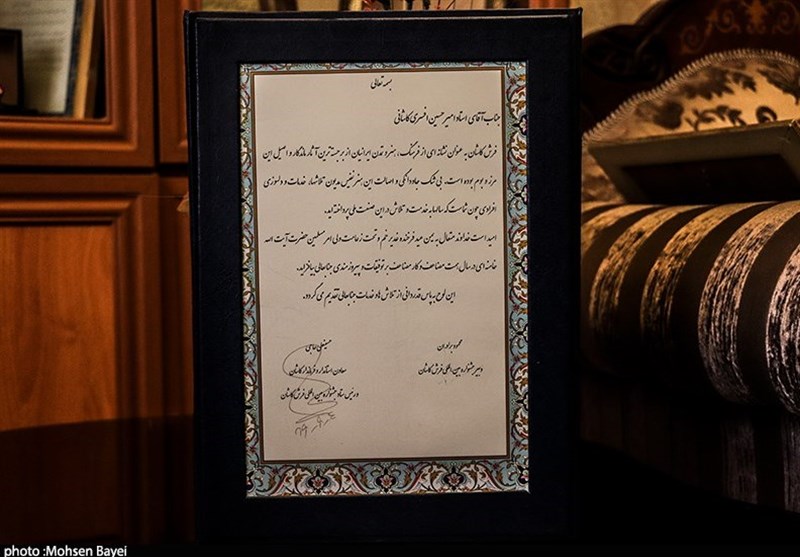افسری کاشانی بیان کرد: عموی من در طول عمر پربرکت خود مفتخر به کسب جوایز و نشانههای معتبر و بزرگی شد و از نمونههای آثار تابلوفرشهای او با مضامین ابوعلی سینا و فردوسی در موزه ابوعلی سینا و توس نگهداری میشود.