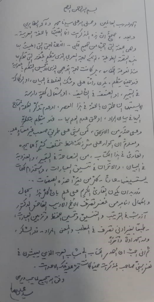 در یکی از این جلسات به ایشان عرض شد که ضرورت دارد این خاطرات به نگارش درآید تا خوانندگان از آن مطلع و بهرهمند شوند. ایشان با تشکر این درخواست را اجابت فرمود، و این کار را با املا کردن خاطبات زندگی خود آغاز کرد. ... این خاطرات به زبان عربی املا شده، و ابتدا خوانندگان عربزبان از آن مطلع خواهند شد. که البته این، هم نشانگر جایگاه زبان قرآن در دل ایشان و نیز دلیل دیگری است بر قدرت و ظرفیت این زبان از جهت وحدتبخشی امت مسلمان، و در نظر گرفتن هر تفاوت جغرافیایی، قومی و زبانی میان مسلمانان.