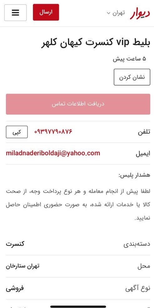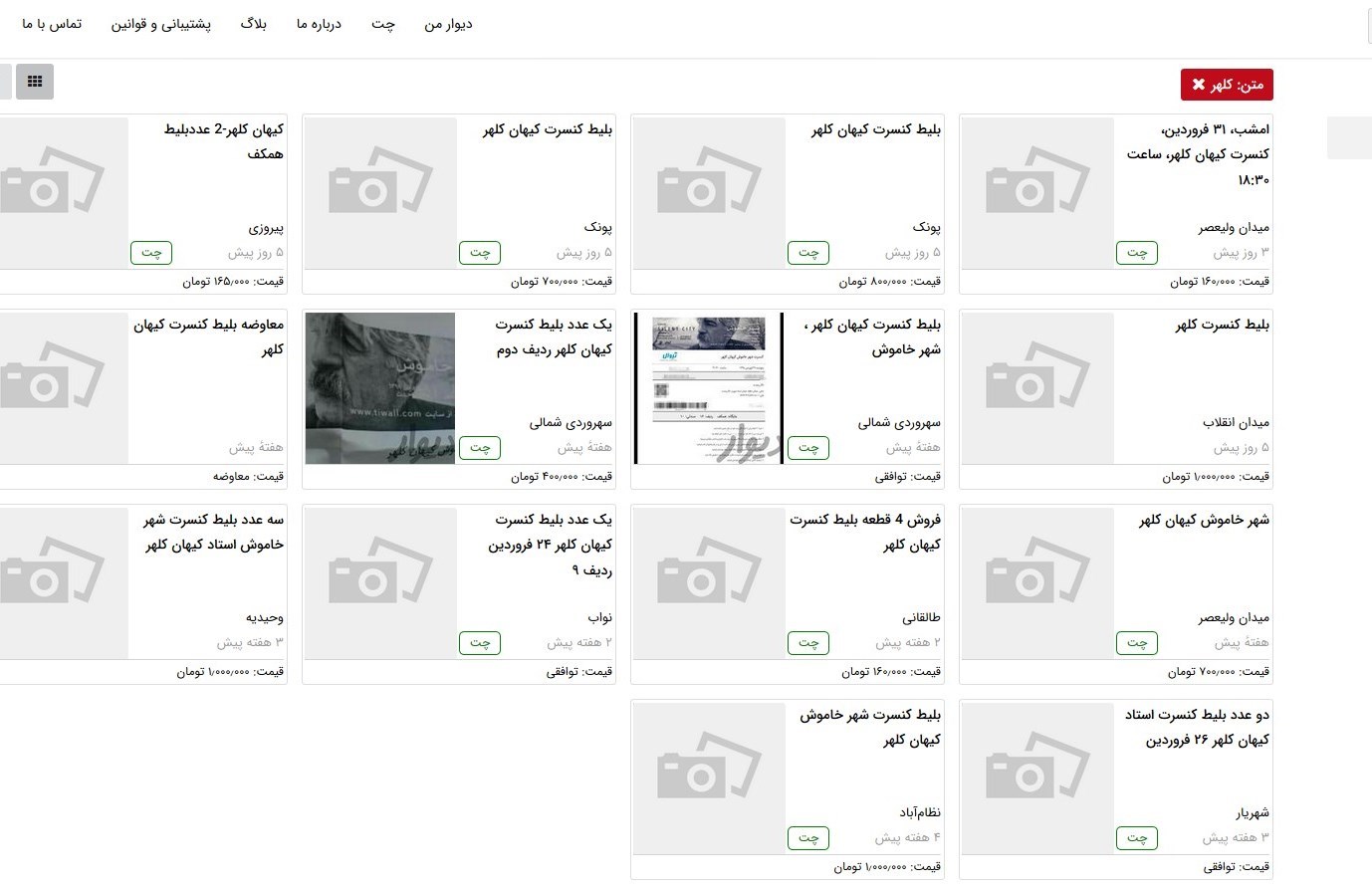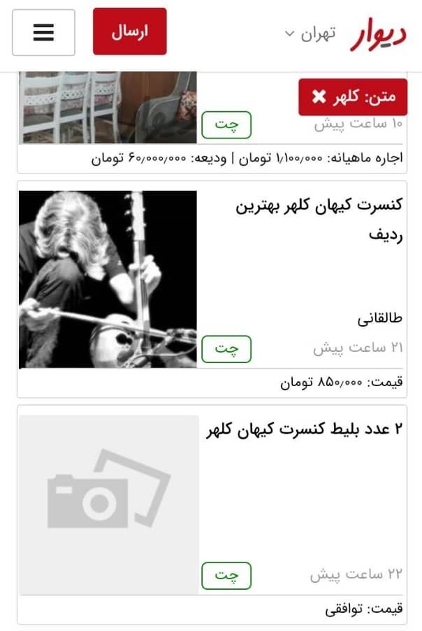 هر چه به اجراها نزدیک میشدیم، بازار سیاهِ بلیتها داغتر میشد. اما این بلیتها از کجا میآمد. سایت دیوار اصلیترین محل فروش بلیتهای کنسرت کیهان کلهر در بازار سیاه بود.