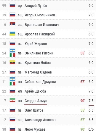 به گزارش خبرگزاری تسنیم، خبرگزاری ورزشی چمپیونات روسیه با مشارکت کاربرانش به سردار آزمون بابت بازی 90 دقیقهای در ترکیب تیم زنیت سنپتربورگ نمره فنی بسیار خوب 7.5 را اختصاص داد تا بهترین بازیکن میدان لقب بگیرد.