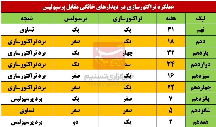 برتری محسوس تراکتورسازی در دیدارهای خانگی مقابل پرسپولیس