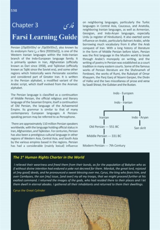 در فصل پایانی این کتاب، برای آشنایی گردشگران خارجی با زبان شیرین فارسی راهنمای دو زبانه‌ای تهیه و تدوین شده که حاوی اطلاعات اولیه مورد نیاز برای یادگیری اصطلاحات و جملات کلیدی زبان فارسی است؛ در ابتدای این فصل الفبای فارسی و معادل انگلیسی آن عنوان شده و سپس لغات و اصطلاحات رایج آورده شده‌اند، در انتهای این فصل نیز فرهنگ لغات انگلیسی به فارسی همراه با شیوه تلفظ صحیح کلمات درج شده است.