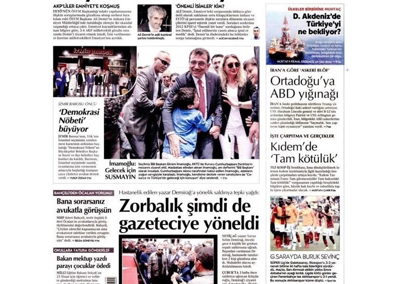 به گزارش گروه بینالملل خبرگزاری تسنیم، بسیاری از روزنامههای ترکیه، امروز در عکس و تیتر صفحه نخست، دستگیری دو تن از اعضای تحت تعقیب پ.ک.ک را برجسته کردهاند.
