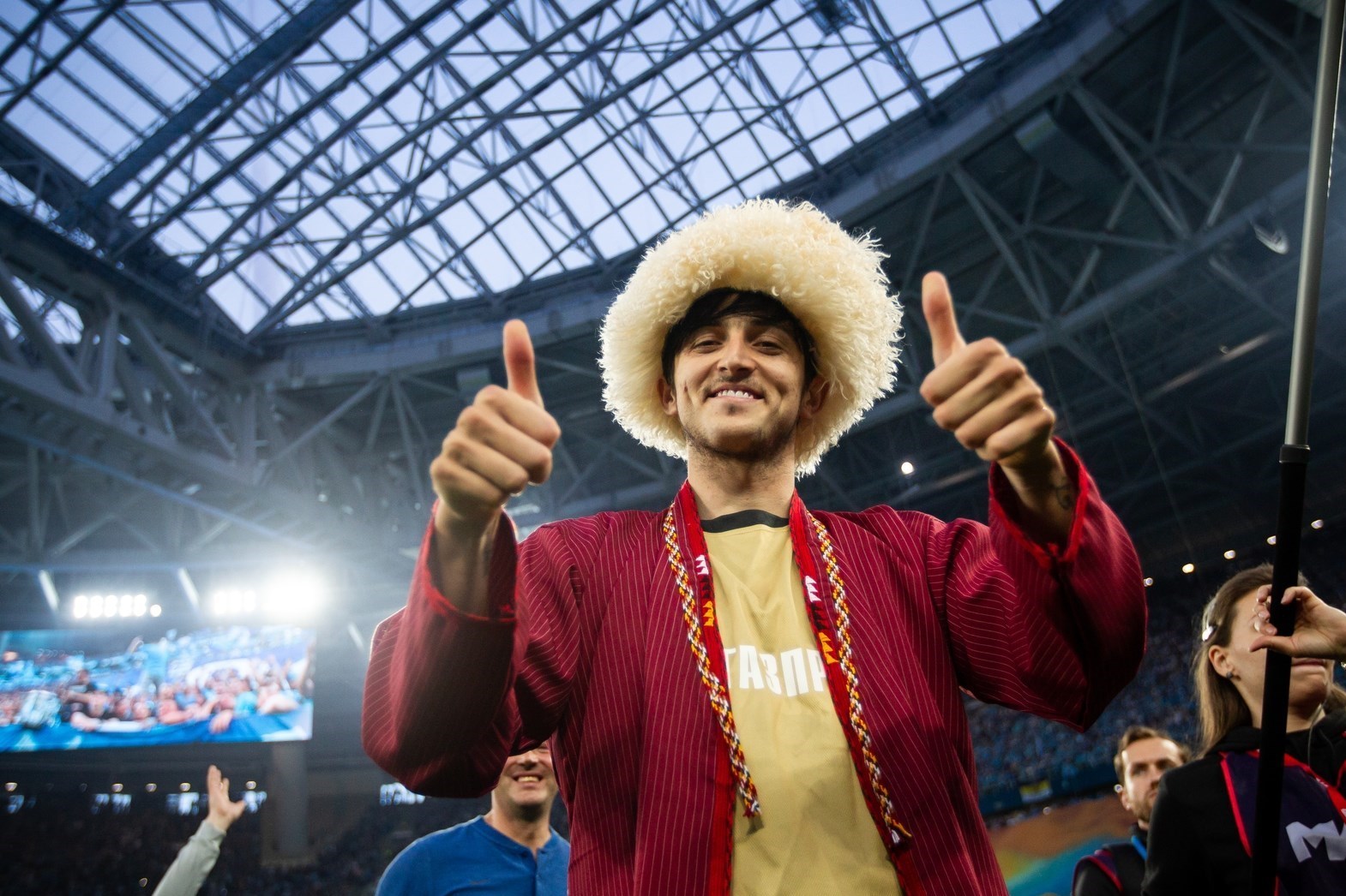 جشن قهرمانی تیم زنیت سن‌پترزبورگ در شب نورانی ورزشگاه گاز پروم هیجان زیادی داشت و سردار آزمون، مهاجم ایرانی نیز لباس سنتی ترکمن‌ها را بر تن کرده بود.
