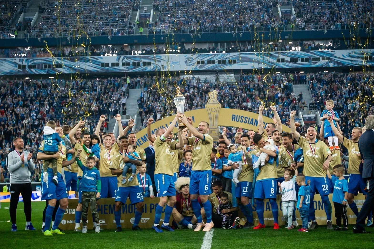 تیم زنیت جشن باشکوهی پس از دریافت جام قهرمانی فصل 2019 - 2018 لیگ برتر روسیه در ورزشگاه گاز پروم واقع در جزیره کوچک کرستوفسکی شهر سن‌پترزبورگ برپا کرد.