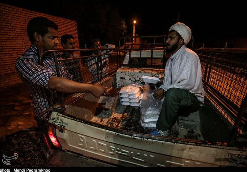 توزیع وعده‌های افطار و سحر در منطقه سیل‌زده «بامدژ» توسط گروه جهادی مدافع حرم + تصاویر