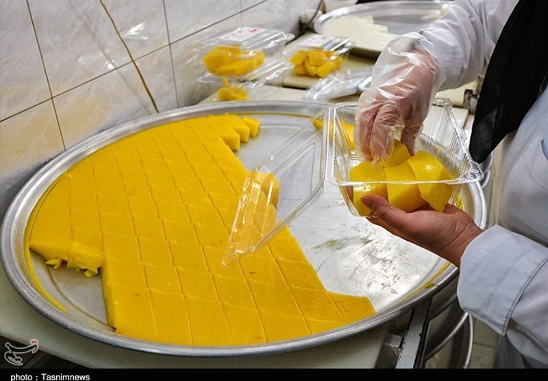 پخت این حلوا از بعد از افطار تا نیمههای شب، گاه تا نزدیکیهای صبح ادامه دارد. بعد از پخت حلوا را در سینیهای بزرگ ریخته و بعد از گذشت شش تا 8 ساعت پس از خنک شدن، حلوا را بهصورت قطعات لوزیشکل بریده و عرضه میکنند.
