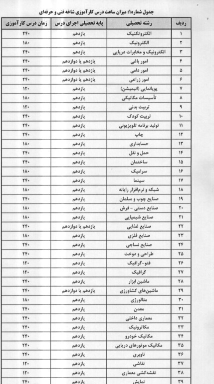 پایه اجرا و میزان ساعات کار آموزی شاخه فنی و حرفهای بر اساس ماهیت هر رشته 120 تا 240 ساعت اعلام میشود.