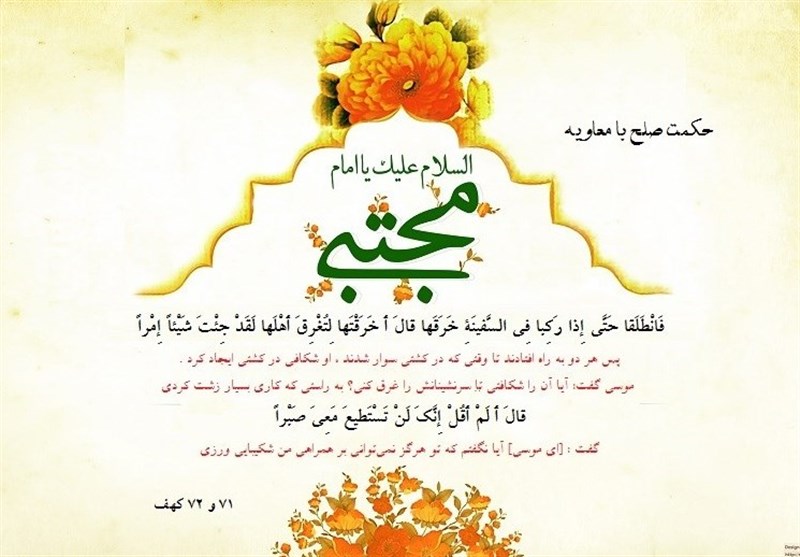 این استدلال امام مجتبی(ع) مربوط به آیاتی از سوره کهف است. طی این ماجرا حضرت موسی(ع) در جوانی با خضر نبی همراه میشود تا در همراهی وی برخی علوم و حکمتهای الهی را تعلیم ببیند. در آیه71 سوره کهف درباره واقعه سوراخ کردن یک کشتی توسط خضر(ع) میخوانیم: «فَانْطَلَقا حَتَّى إِذا رَکِبا فِی السَّفینَةِ خَرَقَها قالَ أَ خَرَقْتَها لِتُغْرِقَ أَهْلَها لَقَدْ جِئْتَ شَیْئاً إِمْراً؛ پس هر دو به راه افتادند تا وقتى که در کشتى سوار شدند ، او شکافى در کشتى ایجاد کرد . موسى گفت : آیا آن را شکافتى تا سرنشینانش را غرق کنى؟ به راستى که کارى بسیار زشت کردى».