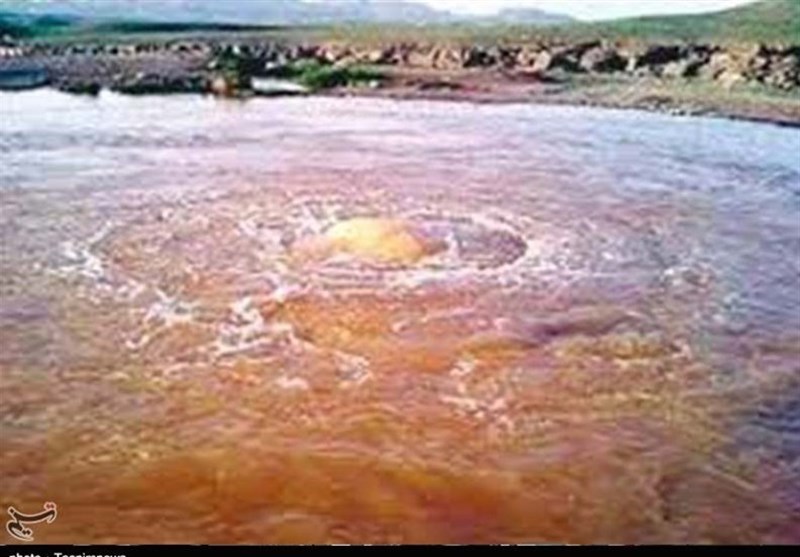 آب این چشمه در استخری عمیق و مدور به محیط 200 متر جمع میشود، این چشمه پرآب دارای آبی است که رنگ آن مایل به سرخ است و در بعضی مواقع به رنگ زرد مایل به لیمویی در میآید. آب این چشمه بهعلت وجود املاح معدنی بهویژه گوگرد رنگین است.