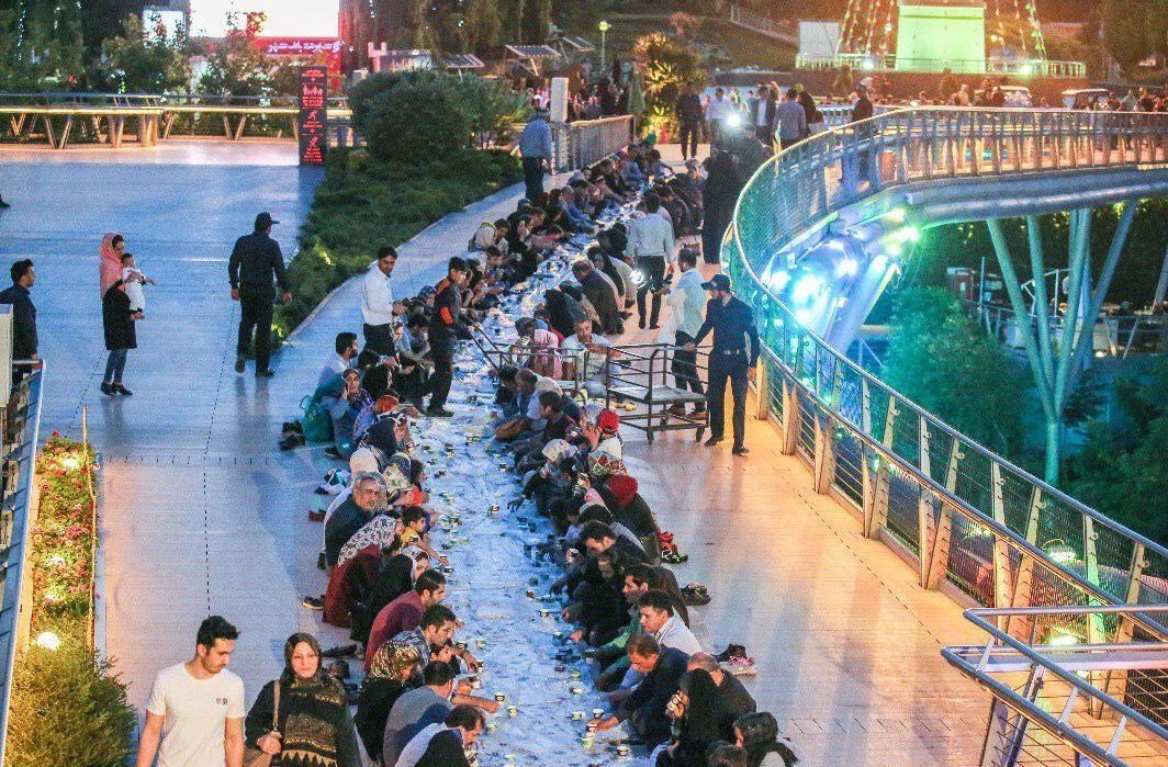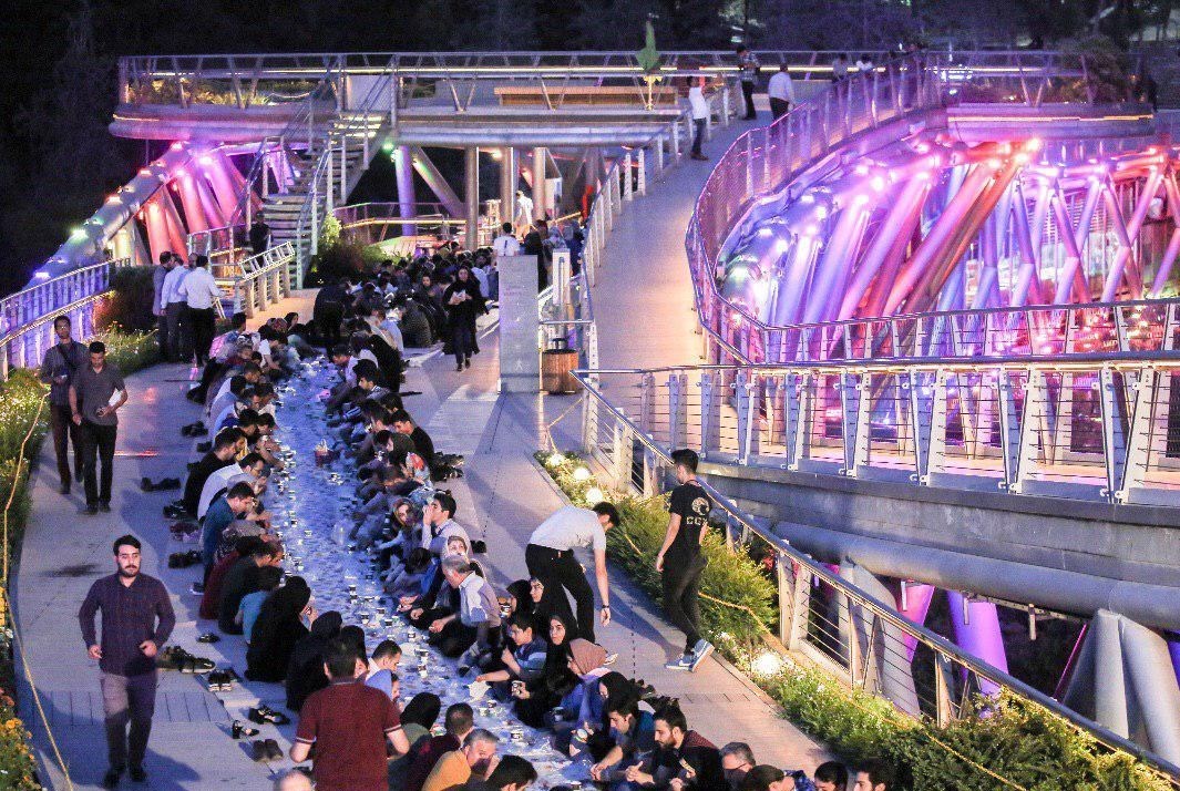به گزارش خبرنگار اجتماعی خبرگزاری تسنیم؛ همزمان با ولادت امام حسن مجتبی (ع) در پانزدهمین شب از ماه مبارک رمضان در جشنواره "باغ رمضان" سفره افطاری ساده روی پل طبیعت تهران گسترده شد.