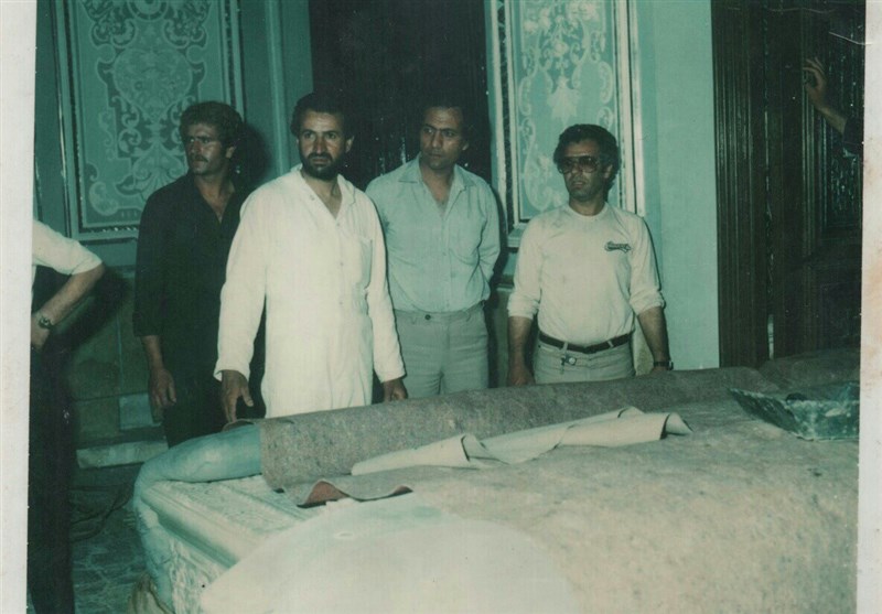 انتقال سنگ قبر ناصرالدینشاه از حرم حضرت عبدالعظیم(ع)- احمدیان نفر دوم از سمت چپ