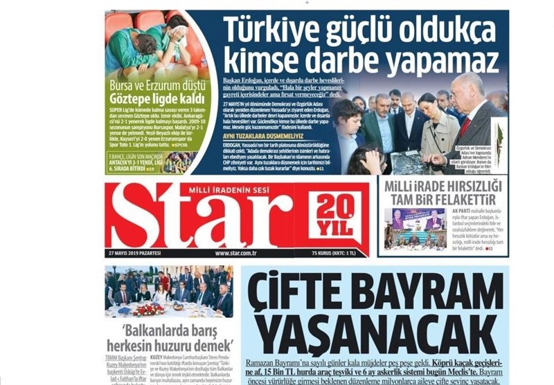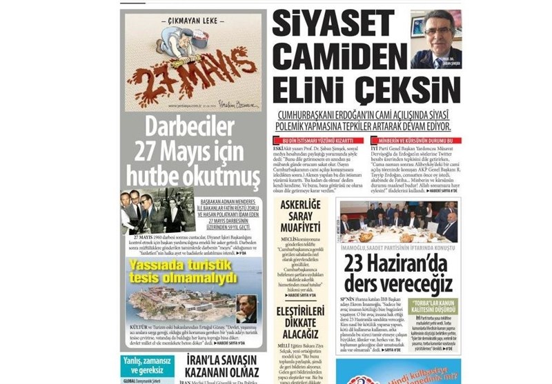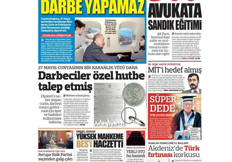 به گزارش گروه بینالملل خبرگزرای تسنیم، بسیاری از روزنامههای ترکیه، امروز در عکس و تیتر صفحه نخست، اظهارات اردوغان در مورد کودتا را برجسته کردهاند.