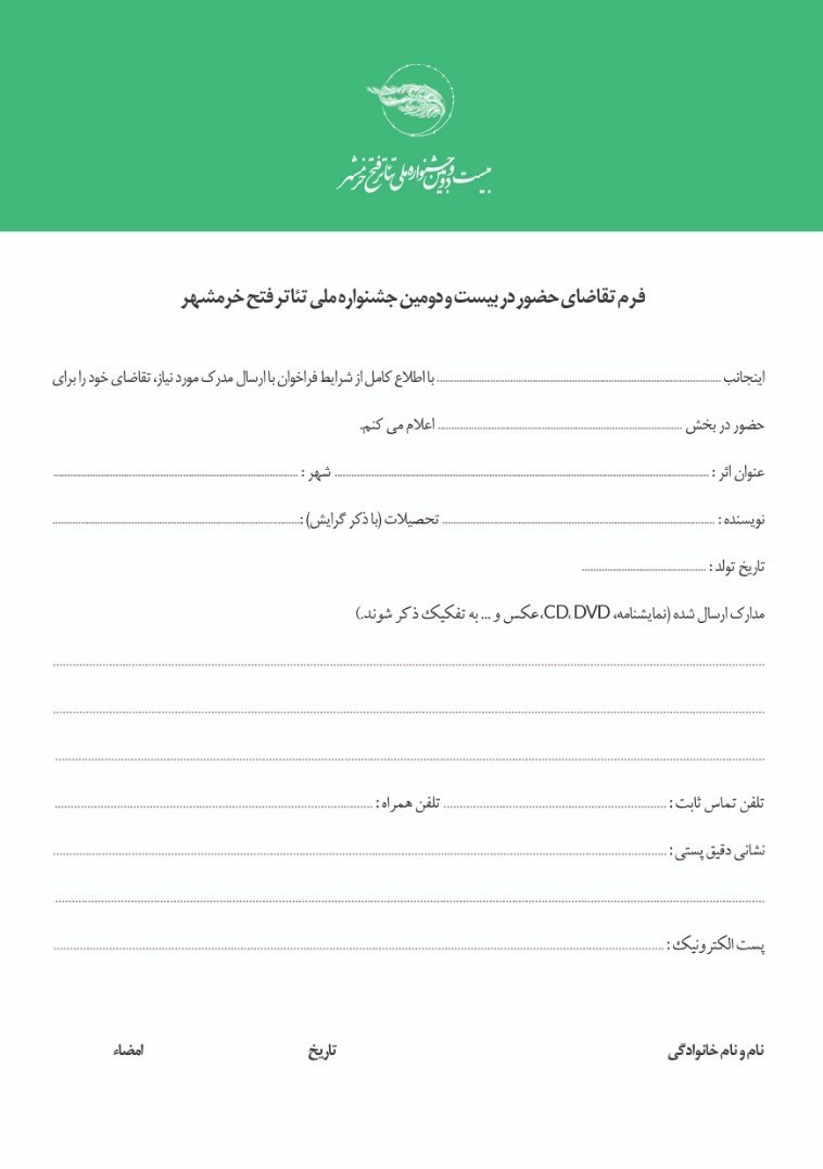 فراخوان بیست و دومین جشنواره ملی تئاتر فتح خرمشهر پیوست خبر شده است.